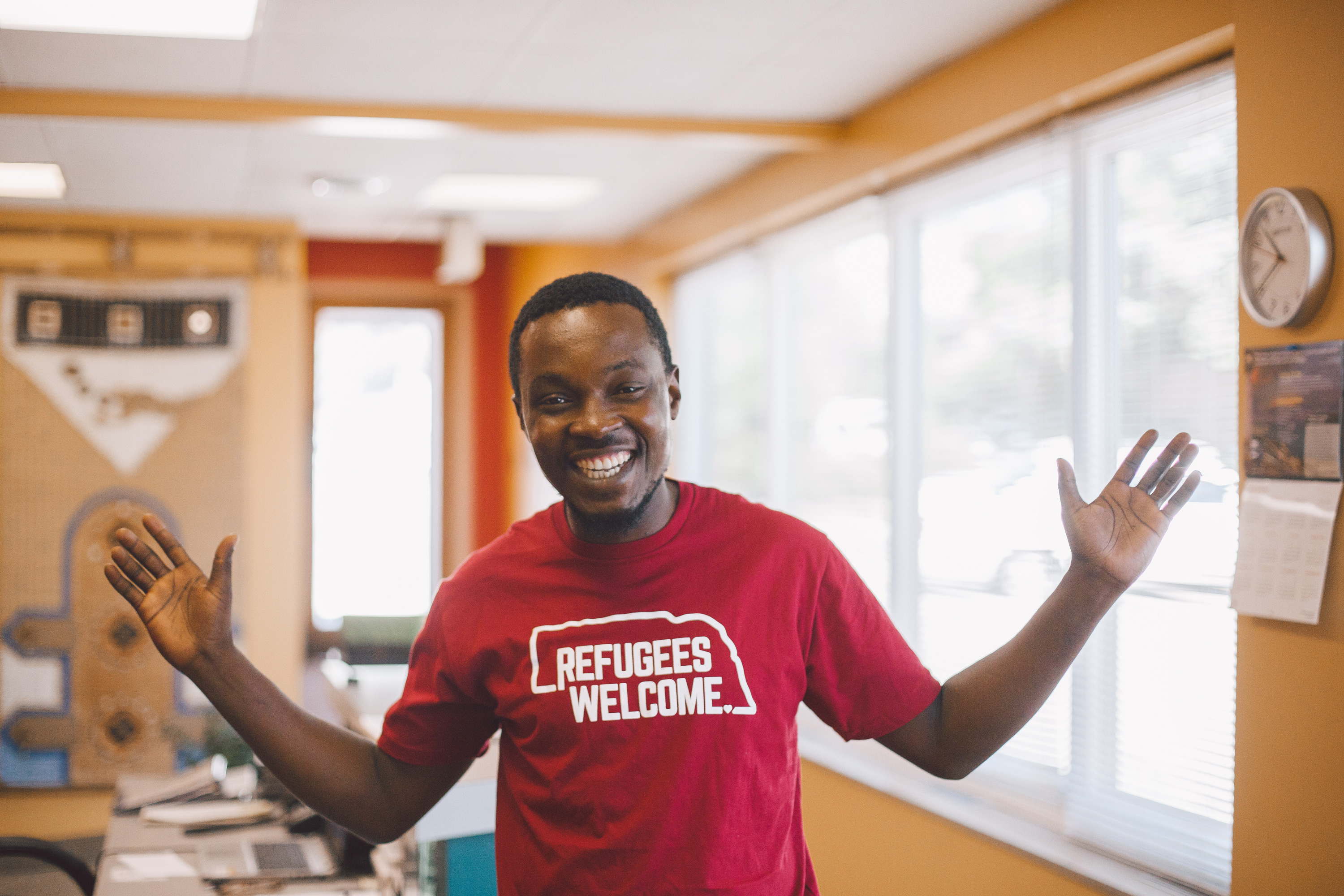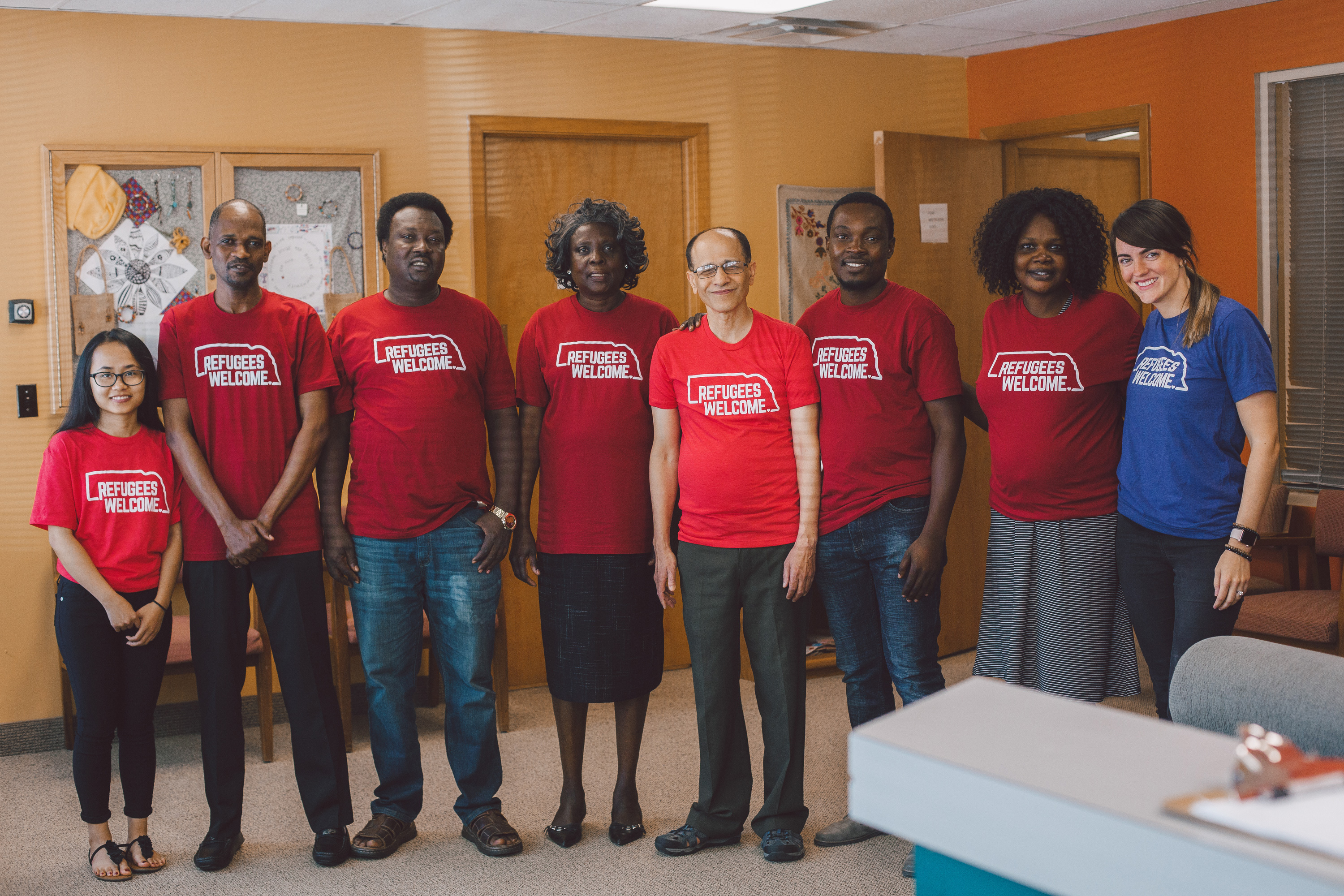 We’ve created ‘Refugees Welcome’ and ‘Immigrants Welcome’ t-shirts to show support for Nebraska’s refugee and immigrant family, friends and neighbors. Buy a t-shirt and spread the love.