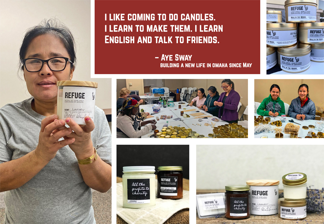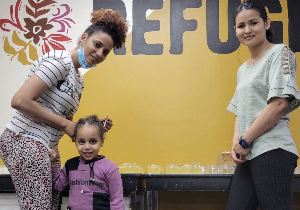 Project Refuge is a candle-making small business we developed to give refugee women formal work experience when they first arrive. Making these candles is a good step in gaining identity and experiences outside of the home, and an opportunity to practice English. Each candle is signed by the candle artisan! The candles are all-natural, made with soy wax that acts like a lotion, which means that you can dip your fingers in the melted wax and use this as a warm and moisturizing hand treatment. Project Refuge membership has grown so successfully that we were able to fully fund scholarships for two refugees who will focus on furthering their education to obtain a better job.